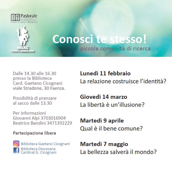 La prof. Beatrice Bandini conduce quattro pomeriggi di confronto per giovani presso la biblioteca diocesana “Cicognani”, per ragionare con i maestri del pensiero di tutti i tempi e riflettere sulle grandi domande esistenziali.