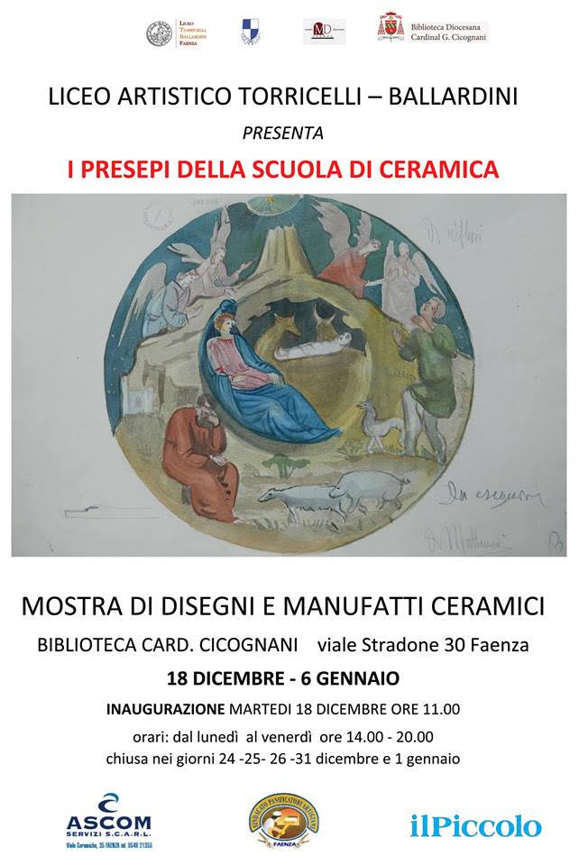 Inaugura martedì 18 dicembre alle ore 11 la mostra di disegni e manufatti ceramici realizzati degli alunni della scuola di ceramica Ballardini sul tema del presepe.