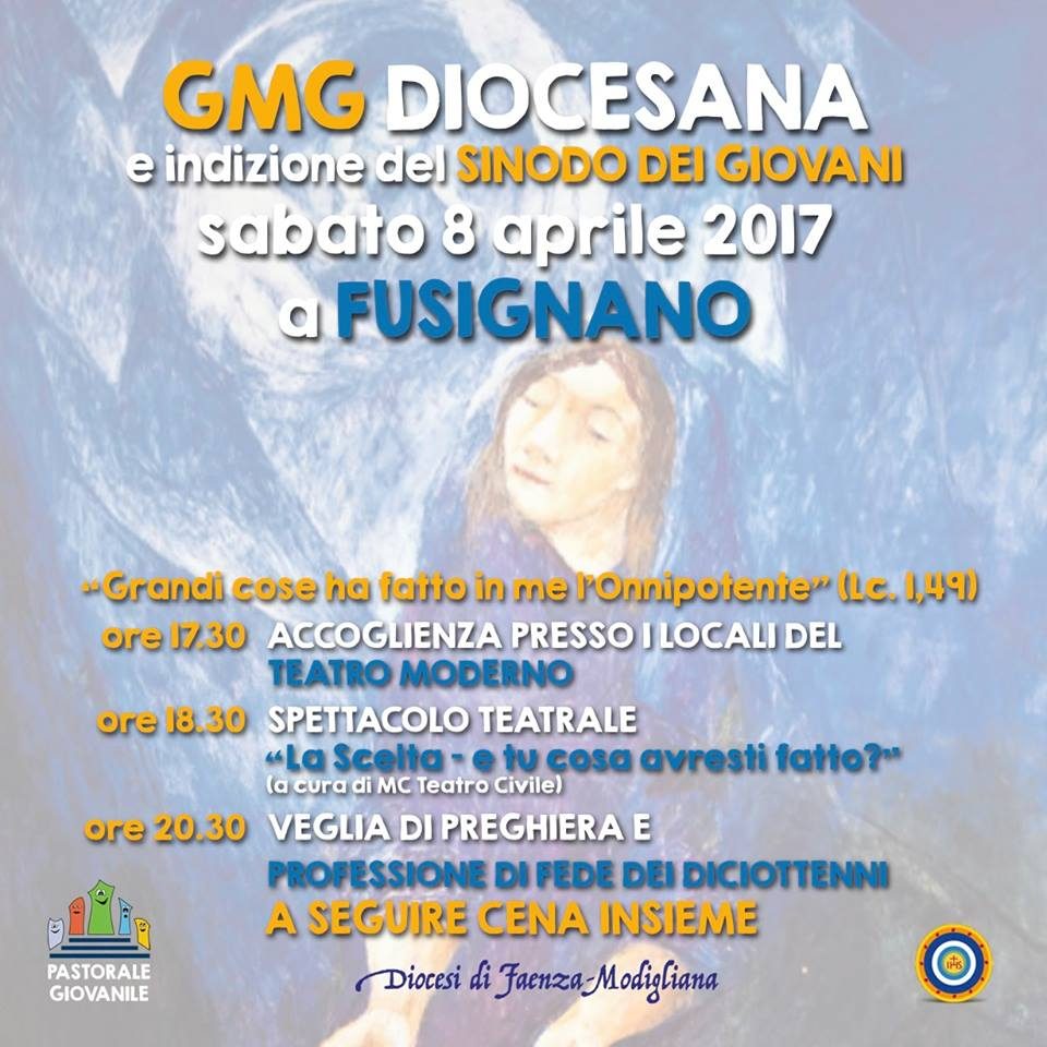 Sabato 8 aprile alle 20.30 nel corso della GMG diocesana, in programma a Fusignano, Il vescovo Mario indirà ufficialmente il Sinodo dei Giovani.